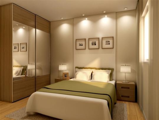 Se o cômodo for pequeno, abra mão dos criados-mudos. Uma prateleira pode abrigar abajur e livros, além de dar um toque especial.